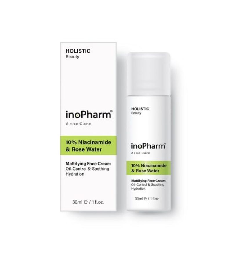 Kem dưỡng Acne Care Mattifying Face Cream là dòng sản phẩm kem dưỡng khóa ẩm của thương hiệu InoPharm (Bulgaria). Sản phẩm đã được kiểm nghiệm da liễu và tối ưu hóa để giải quyết nhu cầu kiềm dầu và dưỡng ẩm của da dầu mụn. Với kết cấu kem mỏng nhẹ, sản phẩm hấp thụ dầu thừa tạo lớp nền lì tức thì, đồng thời cung cấp độ ẩm cần thiết, ngăn ngừa tình trạng da kích ứng do mất nước, mang lại làn da ẩm mịn sau một thời gian sử dụng.