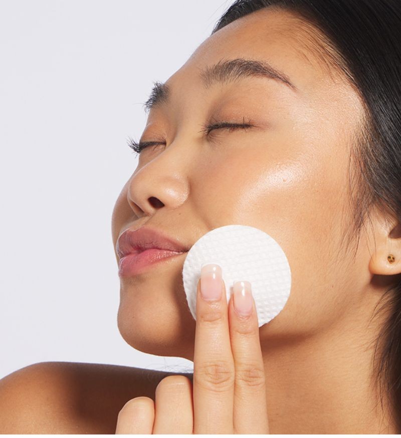 Bước 2: Sử dụng miếng pad đã được làm ẩm sẵn, thoa sản phẩm lên toàn bộ khuôn mặt tránh vùng mắt.
