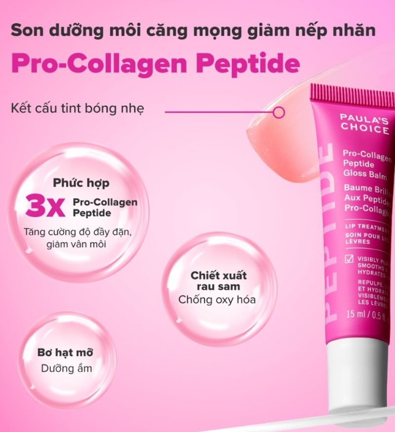 Son dưỡng giúp môi mềm mịn và giảm nếp nhăn Paula’s Choice Pro-Collagen Peptide Gloss Balm 15ml