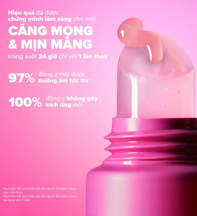 Kích thích sản sinh Collagen tự nhiên, giúp đôi môi căng mọng và đầy đặn rõ rệt.