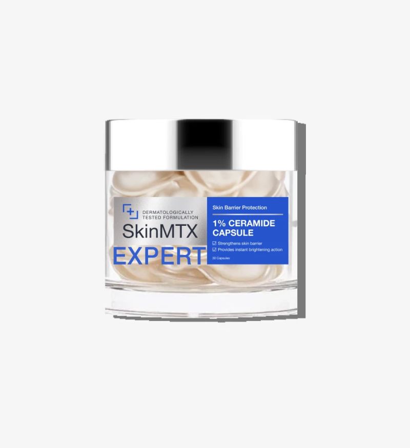 SkinMTX 1% Ceramide Capsule của thương hiệu SkinMTX (Thụy Sĩ) là tinh chất được bào chế giúp phục hồi tổn thương và mang lại vẻ tươi trẻ cho làn da. Mỗi viên nang chứa đựng một hàm lượng tinh chất cô đặc, tinh khiết, được bảo vệ tuyệt đối khỏi tác động của oxy hóa bên ngoài. Sản phẩm tập trung giải quyết nguyên nhân của làn da yếu, xỉn màu và mất nước bằng cách bù đắp lượng lipid thiếu hụt, từ đó khôi phục lại "bức tường" bảo vệ tự nhiên vốn có của biểu bì.